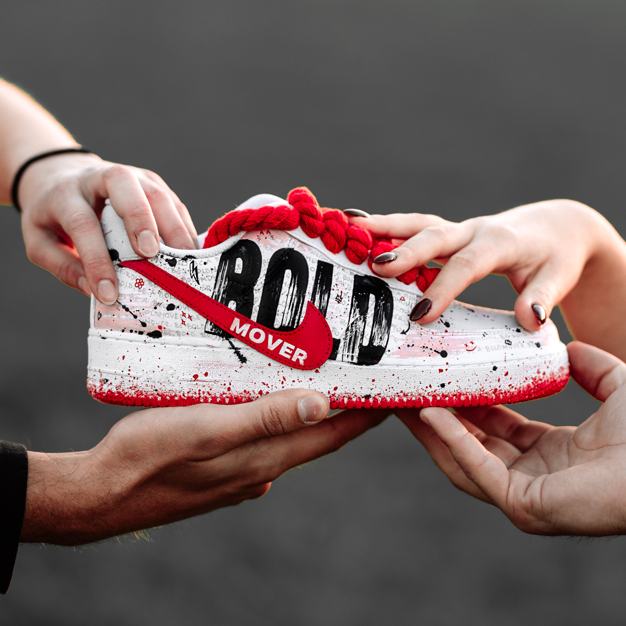 Ez az exkluzív sneaker a BOLD MOVERS merész és egyedi stílusát tükrözi. A márkára jellemző élénk piros, rope lace fűző dinamikus kontrasztot alkot, amely azonnal magára vonja a figyelmet, miközben a nagy „BOLD” felirat az oldalán a merész önkifejezés üzenetét hordozza. A swoosh is más helyre került az alap helyéhez képest, erősítve ezzel a designt.